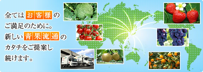 弊社が拠点を置く「福岡市中央卸売市場青果市場」は、日本全国から年間約33万トンの青果物が集まる九州最大の拠点市場です。市場内の卸企業「福岡大同青果」様からの仕入れをはじめ、産地からの直接買い付け、海外の青果物は商社を介しての仕入れなど様々なルートを確保。世界中の生産者や仕入れ先とのパートナーシップ、リレーションシップを強固にすることにより、高品質の商品を安定的に供給し、迅速に供給できる流通システムを確立してきました。